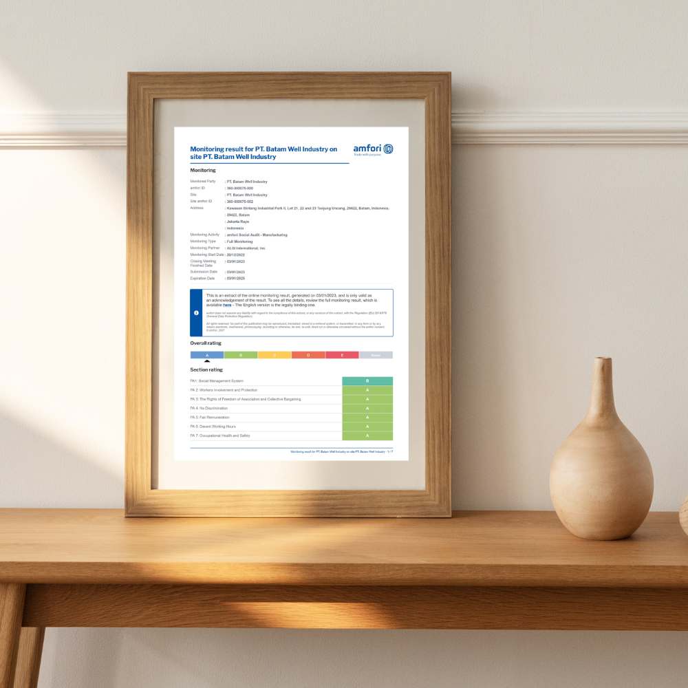 Our enterprise agrees to respect the following labour principles set out in the amfori BSCI Code of Conduct.